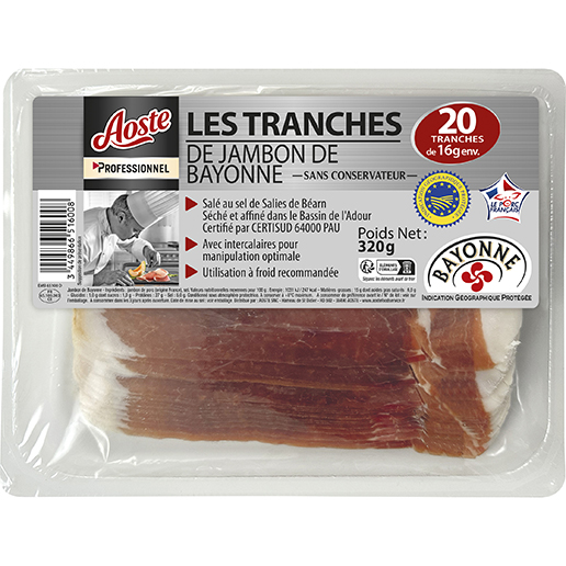 Jambon de Bayonne IGP 20T x 16g Aoste Professionnel (inercalaires)