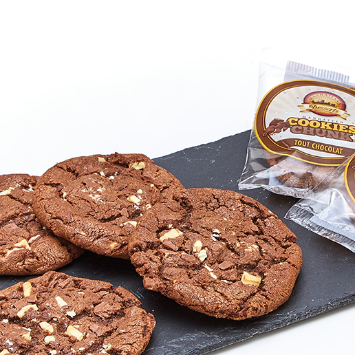 Cookie vanille, pépites chocolat lait, fourré cacao noisette 80 g