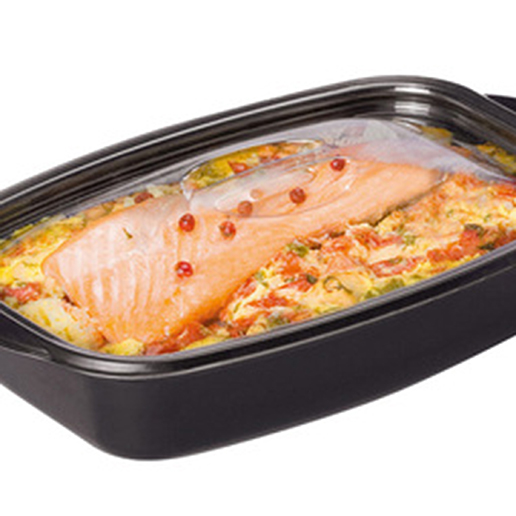 Barquette charnière micro-ondable.