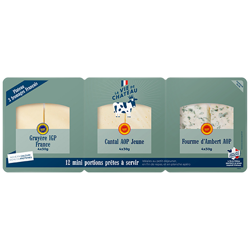Plateau 3 fromages en tranches : Gruyère IGP, Cantal AOP jeune, Fourme d'Ambert AOP 360 g