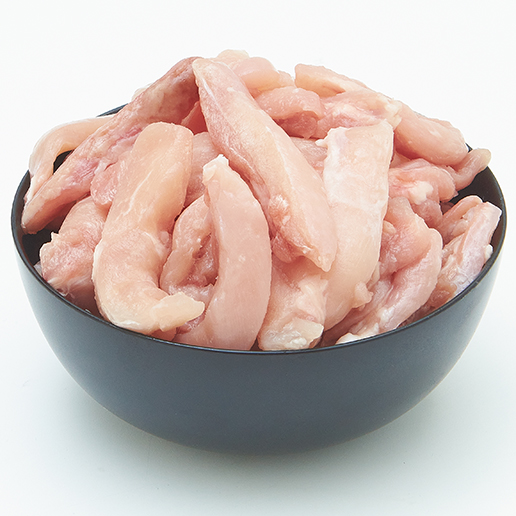 Emincés de haut de cuisse de poulet crus