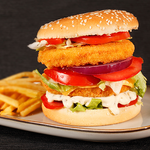 Burger de poulet cuit pané 120 g, surgelé IQF, sachet Délices et snacks 1.08 kg, colis de 5 x 1.08 kg