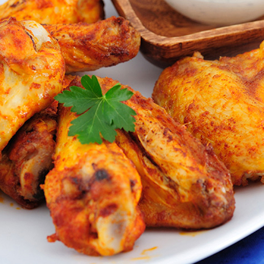 Ailes (Wing's) de poulet cuit tex mex, surgelé IQF, sachet Délices & snacks, carton 5 x 1 kg