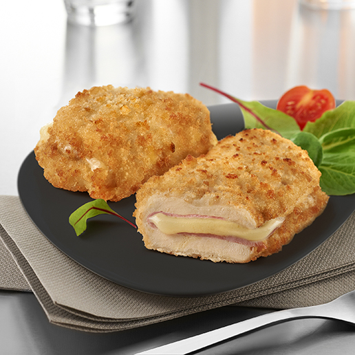 Escalope cordon bleu de poulet bacon / comte IQF vrac 5 kg surgelée.