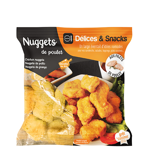Sac nuggets plt pâte à beignet cuits surgelés IQF 1 kg id'halal